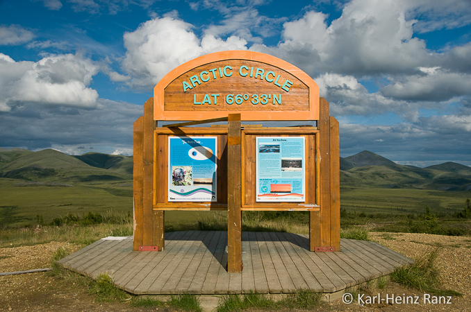 Wir überqueren den Polarkreis (66° 33' nördlicher Breite), hier geht die Sonne an den Tagen der Sonnenwende gerade nicht mehr auf- bzw. unter. Bei km 607 erreiche ich den MacKenzie River und den kleinen Ort Tsiigehtchic, der laut Reiseführer keinen Besuch lohnt; vielleicht gerade deshalb reizt es mich mit der Fähre nach Tsiigehtchic überzusetzen. Da treffe ich auf Susan, die als Erzieherin eine Gruppe Kinder im Rahmen des Ferienprogramms beim Holzfische bemalen, beaufsichtigt. Nach 735 km Dempster dann der Endpunkt, der Ort Inuvik.